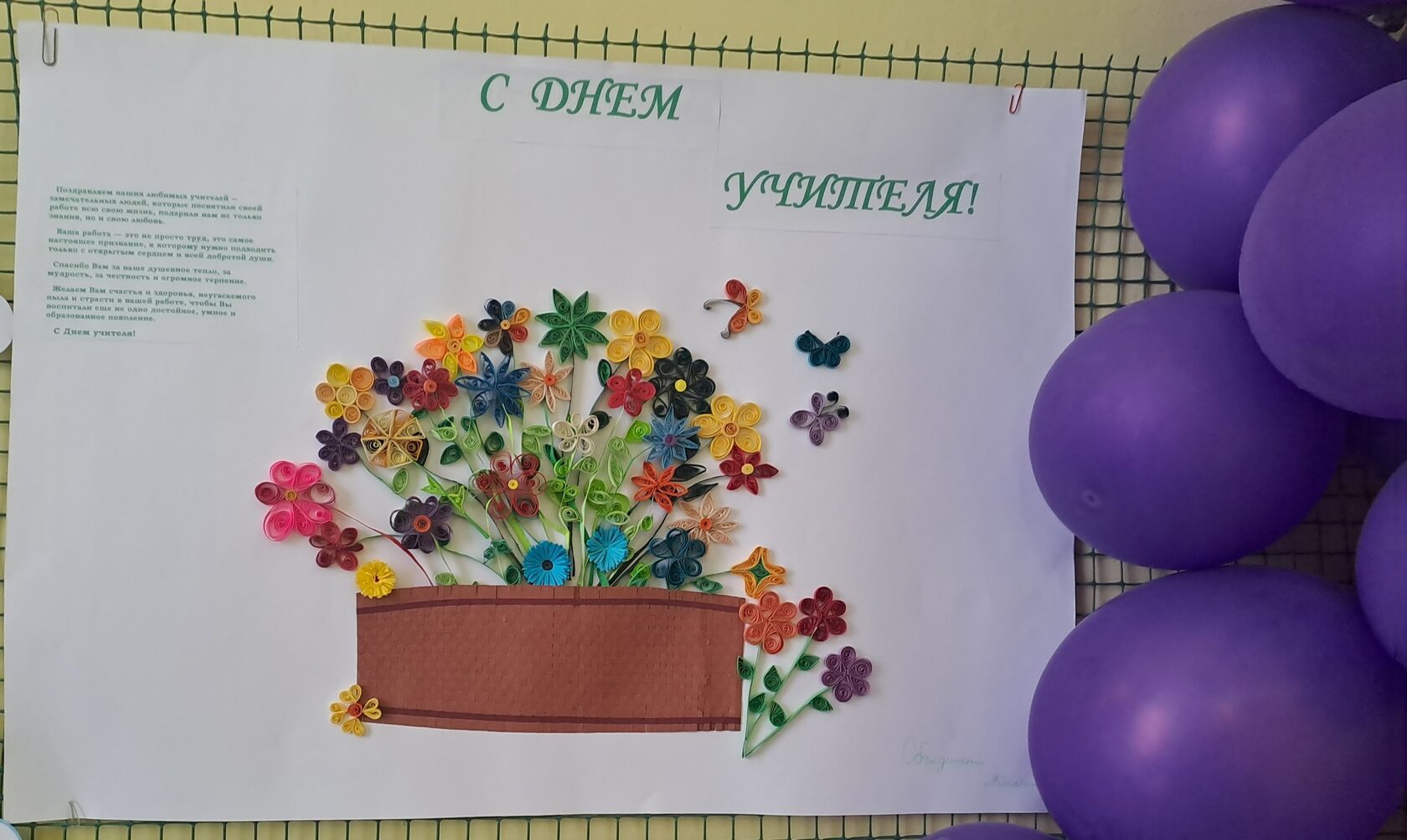 Обучающиеся творческого объединения «Квиллинг» Дворца детского (юношеского) творчества и учащиеся 3 класса школы № 47 поздравляют с профессиональным праздником – Днём учителя!