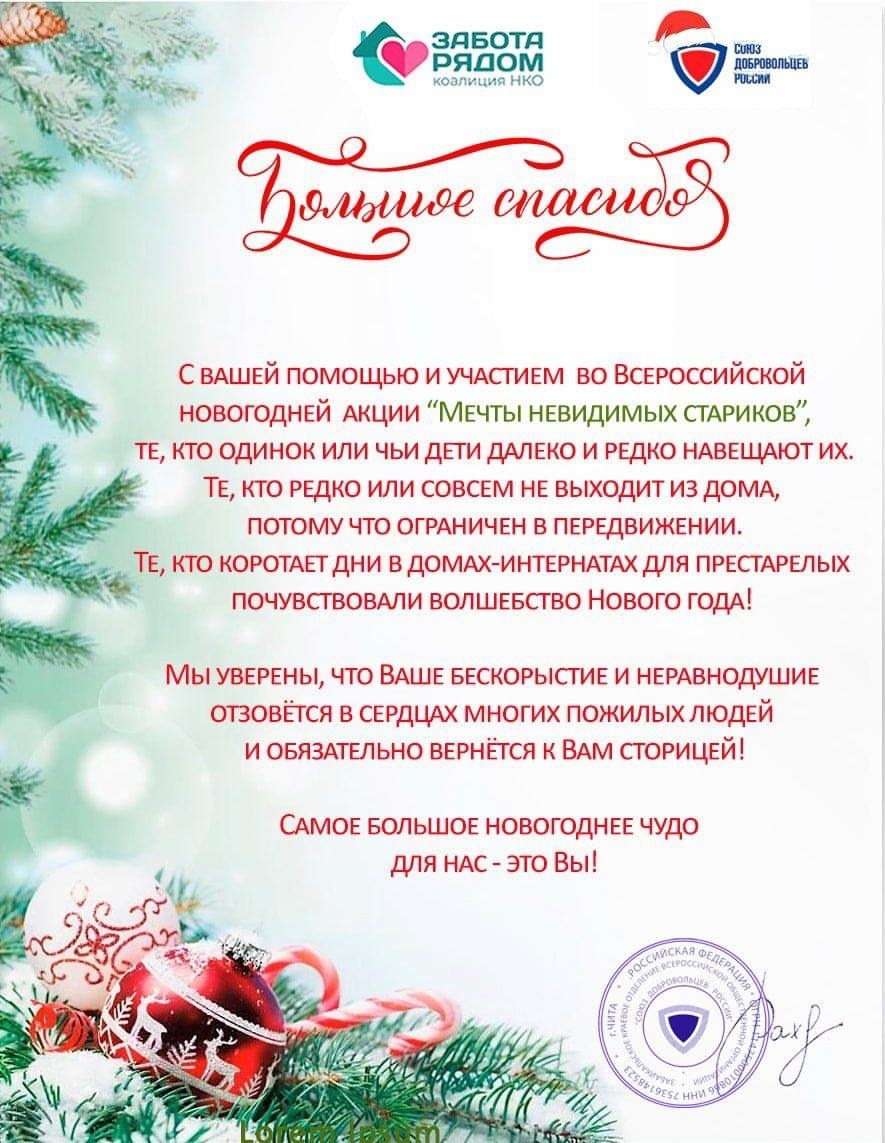 Педагог Дворца детского (юношеского) творчества Ольга Черепанова в преддверии Нового года приняла участие во Всероссийской новогодней акции «Мечты невидимых стариков».